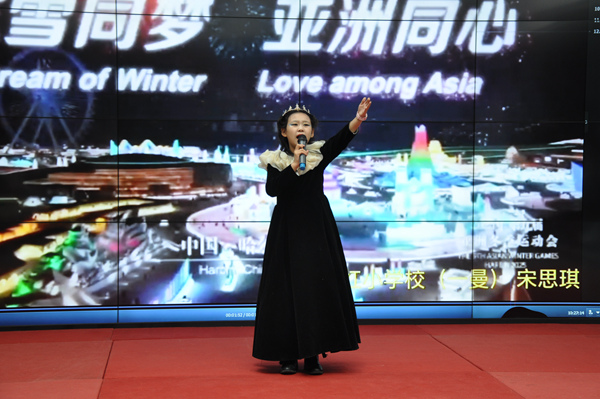 朗诵节目《冰雪颂》《龙从东方来》《梦幻冰雪、相约亚冬》引起现场阵阵掌声,学生们用铿锵有力的声音歌颂着冰雪的魅力与亚冬会的活力,从不同角度展现了冰雪文化的内涵以及对这场体育盛会的热切期盼。