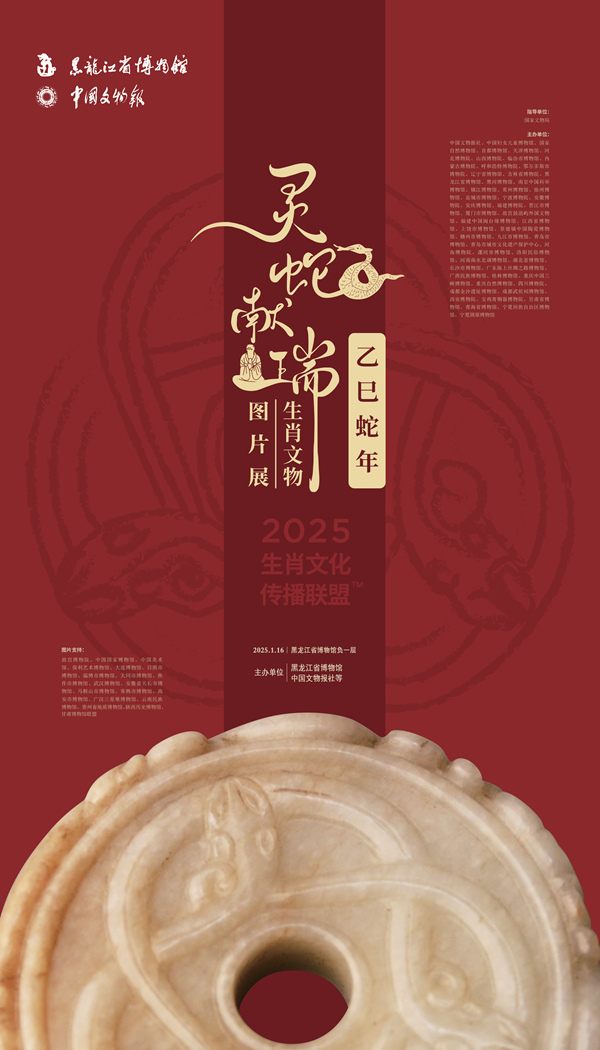 活动介绍:“灵蛇献瑞——2025乙巳蛇年生肖文物大联展”由国家文物局指导,黑龙江省博物馆联合中国文物报社等国内多家文博机构主办,以“蛇”为主题,整合特色馆藏资源,全面深入地展现“蛇”在中华民族悠久历史文化中的独特魅力。