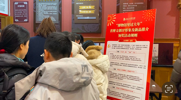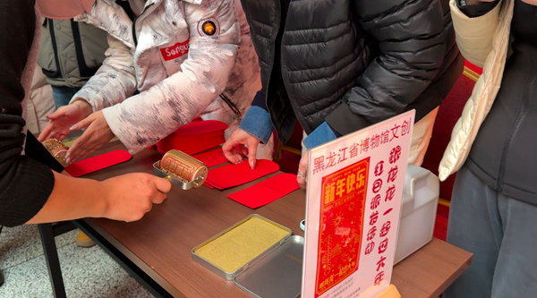 此外,“跟龙龙一起过大年——盖章派送”活动同样受到公众热烈追捧。省博物馆精心准备节日红包,并在其加盖龙龙IP卡通形象的印章,寓意着新年好运连连。活动现场人头攒动、热闹非凡,游客们排队领取龙博加盖特色IP形象印章的红包。大家纷纷表示这次活动让他们感受到了浓厚的节日气氛和龙江文化的独特魅力。