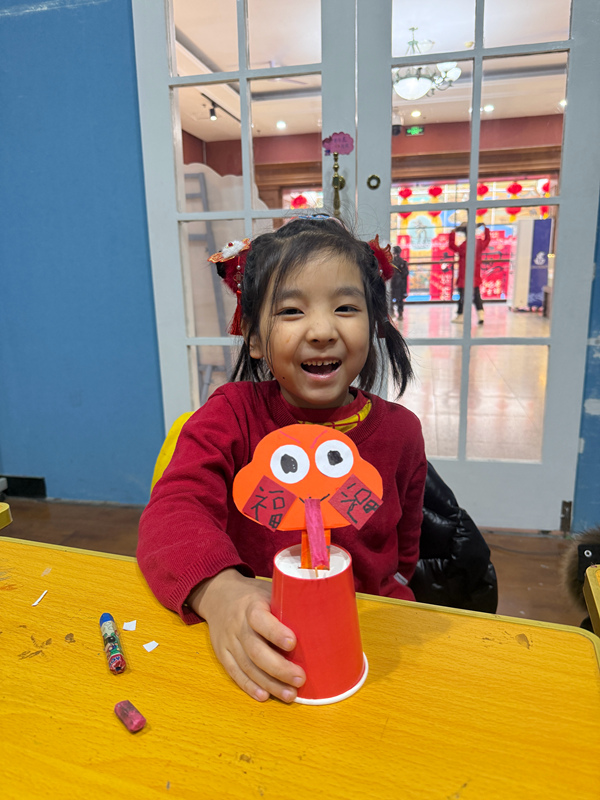 接下来的蛇年吉祥物手工制作环节,把大家的创意与动手能力完全激发了出来!小朋友们用彩纸、剪刀、胶水,纸杯等简单的材料,巧妙地制作出了充满个性的蛇年吉祥物摆件。制作的过程充满欢声笑语,每一件作品都承载着大家对未来一年的美好期许。