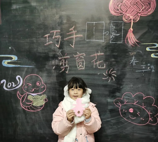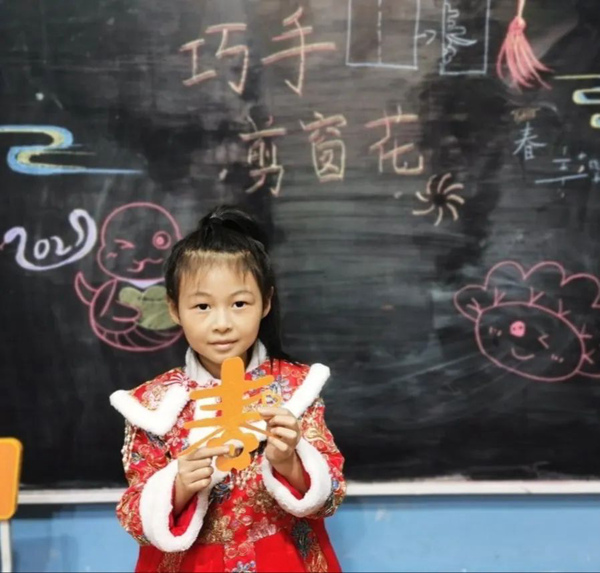 课上,老师不仅注重传统技艺的传授,还鼓励同学们在制作窗花过程中要有创意。在图案设计环节,大家充分展现出丰富的想象力,有的将生肖元素融入窗花,设计出憨态可掬的小动物形象;有的结合现代简约风格,创作出几何形状的抽象图案;每一幅作品都创意十足。