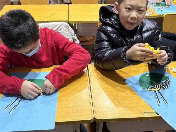 在了解了习俗后,老师带领小朋友们开始了手工环节,大家一起用轻黏土制作出一碗碗面条,课堂上气氛十分轻松愉快。