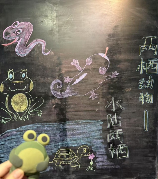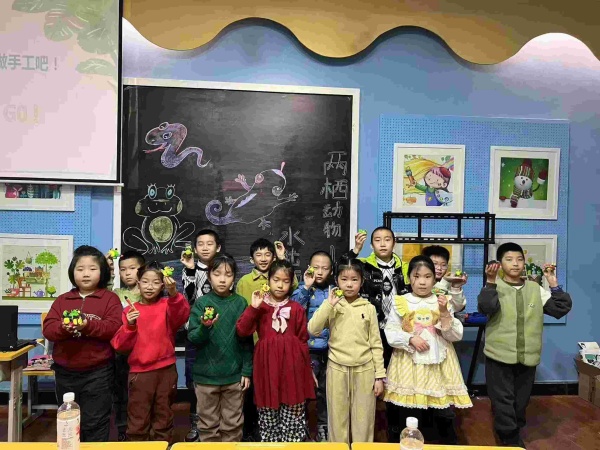 课堂上,老师与同学们围绕两栖动物这一主题进行了深入地交流,老师生动有趣的授课方式让同学们十分有兴趣。课程的最后,大家还结合今日所学,设计了可爱的手工,锻炼了艺术创作能力。