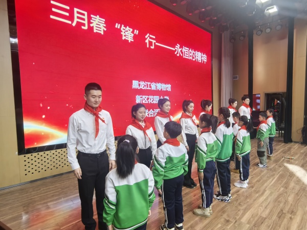 本次活动是黑龙江省博物馆探索“馆校联合”的新模式。活动现场,上演了温馨的一幕。一群朝气蓬勃的小学生,怀揣着对雷锋精神的崇敬,手捧鲜艳的红领巾走向博物馆讲解员并为他们戴上。动作里满是纯粹的敬意。鲜艳的红领巾在讲解员胸前随风轻扬,映照着孩子们纯真的笑容,也象征着雷锋精神在新一代心间扎根,传承的火种被稳稳传递,在这春日里熠熠生辉。