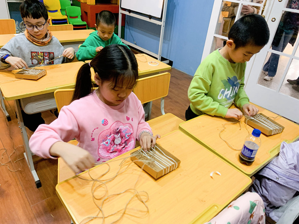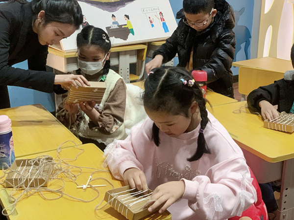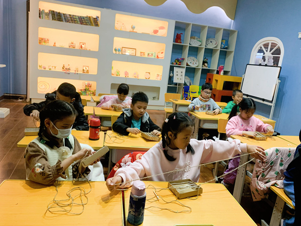 同时,老师还介绍了金代丝织品的制作流程和工艺特点,让同学们对古代丝织技艺有更深入的认识。同学们热情高涨,在老师的带领下,大家一起用麻绳、纸壳等材料,制作出一份满意手工艺品。