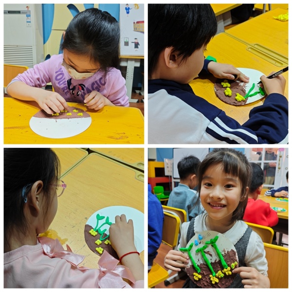 春风拂面,轻嗅淡淡花香,为了留住春日里的美景,小朋友们也抓住春天的小尾巴用自己的巧手创作出了不一样的谷雨作品。
