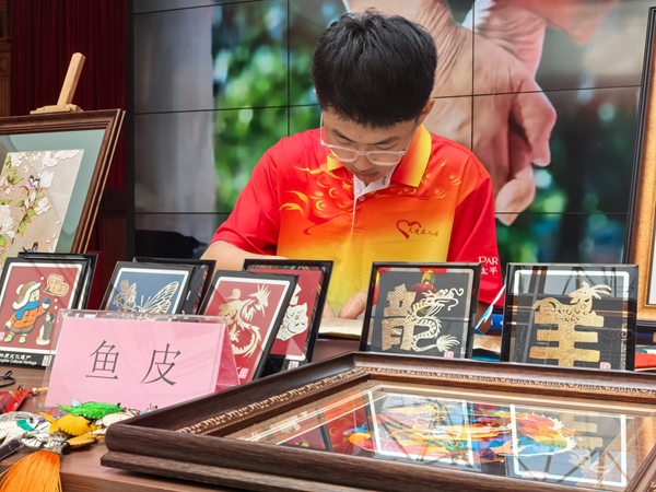 “六一”前夕,黑龙江省博物馆为特殊教育学校的孩子们精心打造了“指尖绽芳华 爱心传温暖”主题系列活动。在“镜映山水 扇绘童心”活动中,科普老师生动讲述铜镜故事,专业手语老师全程翻译,确保每位特殊儿童都能沉浸其中。孩子们用稚嫩的笔触在团扇上描绘心中的山水,每一笔都闪耀着独特的想象力。“指尖艺术绘韵”非遗创作展台前,这些特殊的小艺术家们正专注创作非遗作品——剪纸的巧思、鱼皮画的灵动、掐丝工艺的精致、脸谱的传神,无不展现着他们的艺术天赋。孩子们眼中闪烁的自信光芒,正是这个节日最美的礼物。博物馆用平等与尊重搭建的舞台,让特殊儿童感受到社会的温暖,在传统文化的滋养中,绽放出属于自己的绚丽光彩。