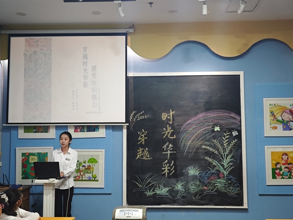 课堂上,省博物馆老师通过趣味问答、互动交流的方式,引导同学们积极融入本次文化课程。让同学们了解到金代丝织品在当时社会生活中的重要地位,以及在文化交流方面发挥的积极作用。例如,通过服饰等级制度对比图,同学们能直观感受到不同阶层服饰的差异,从而理解丝织品所反映的社会等级秩序;借助丝绸之路地图和与周边民族服饰对比图,同学们可以探讨丝织品在促进民族间文化交流与融合中所扮演的角色。