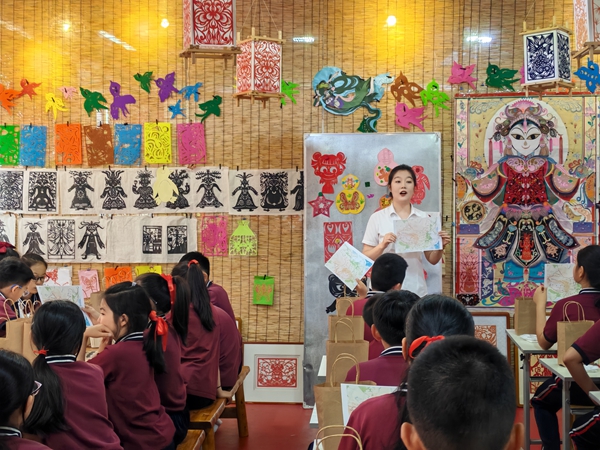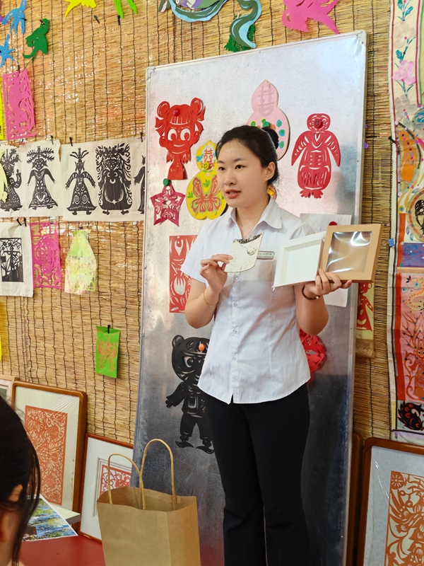 结合实物展品,从选材、剥制、裁剪到雕刻、上色等步骤,详细解析桦树皮画的制作工艺,并展示桦树皮画作品,让同学们深刻理解这一非遗技艺的艺术价值与文化意义。