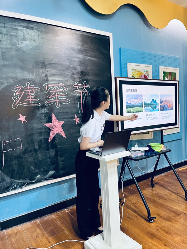 课堂上,老师通过历史图片展示、革命故事讲述、互动问答等方式,引导同学们深入了解“八一”建军节的由来和人民军队的发展历史。老师还介绍了军人的精神风貌,他们不畏牺牲、冲锋在前;他们坚守岗位、守护安宁,无论是抗震救灾还是边防巡逻,总能看到人民子弟兵的身影。