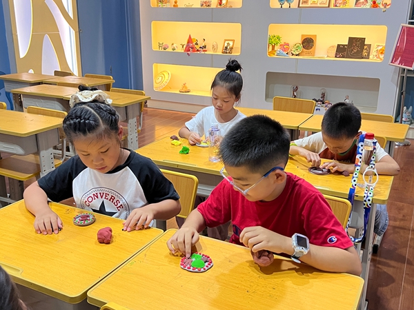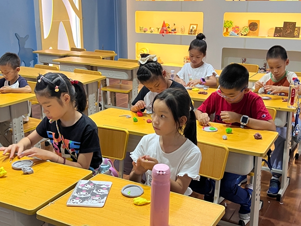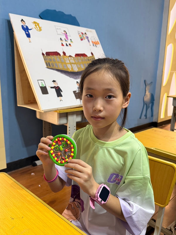 互动环节同样精彩:同学们在老师引导下回顾知识点,踊跃应答随堂问题;更在手工创意环节中,以文字为灵感,为“瓦当”披上斑斓色彩,在动手实践中深悟汉字文化的博大精深,厚植文化自信。