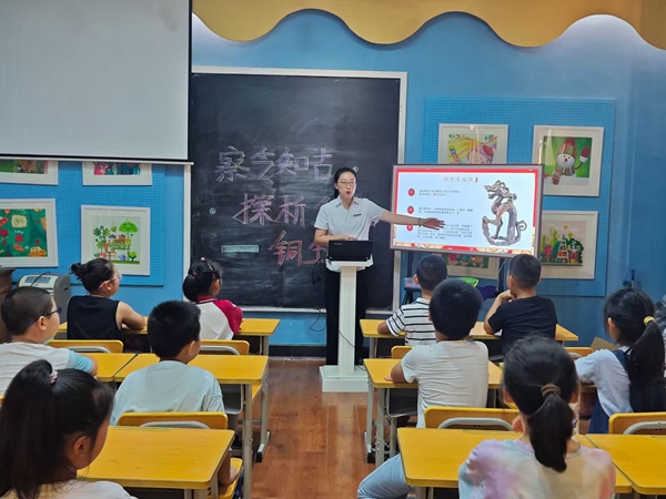 本节科普课以黑龙江省博物馆“镇馆之宝”——金代铜坐龙为核心,带领同学们探寻璀璨的金源文化。老师在课堂上介绍,在中国古代文物里,“龙”的形象千姿百态,而金代铜坐龙不仅凝聚了中华民族数千年龙文化的精髓,更在考古研究与艺术鉴赏领域具备极高的文化价值。通过对铜坐龙造型与纹饰的深入探究,同学们能深刻领悟:唯有将传统文化与现代审美巧妙融合,方能创作出彰显中华文化魅力的艺术精品。