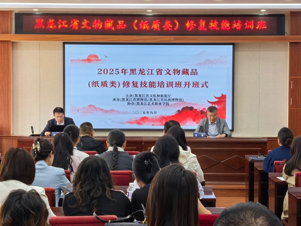 9月26日,由黑龙江省文化和旅游厅主办、黑龙江省博物馆承办的2025年黑龙江省文物藏品(纸质类)修复技能培训班在哈尔滨圆满落幕。经过5天紧张而充实的培训,来自全省各地文博机构的40名业务骨干顺利完成全部课程,满载而归。
