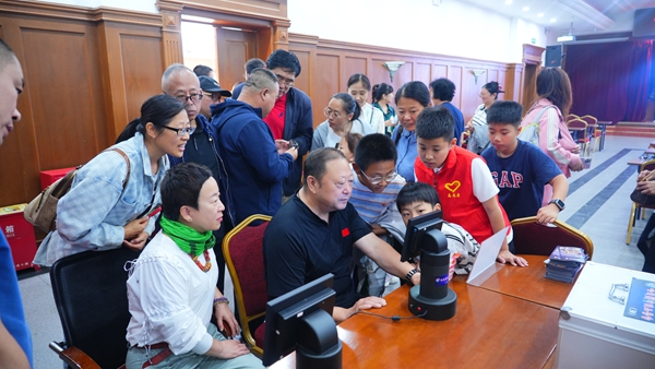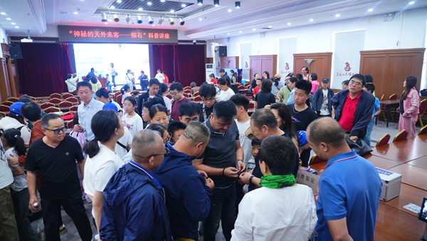 活动以“认识陨石、追寻陨石、研究陨石”为主线,融合“科普讲座+实物触摸+免费鉴定”的多维体验模式,为观众带来一场沉浸式的宇宙探索之旅。哈尔滨市陨石学会副会长严天时以《神秘的天外来客——陨石》为题,奉献了一场引人入胜的科普讲座。他不仅系统讲解陨石的起源、分类及其科研价值,更结合国内外最新发现——如黑龙江双鸭山陨石事件及茂名陨石的研究成果,以鲜活案例拉近观众与宇宙的距离,点燃了每位参与者对星空奥秘的好奇心。