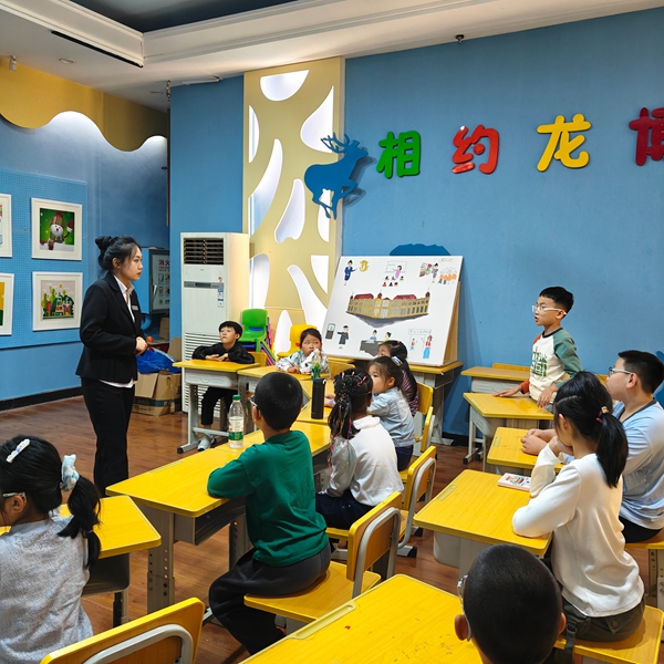 课堂上,老师以音乐开篇,带领孩子们走近陈列在展柜中的彩绘瓷珍品。从青花的浓淡晕染到粉彩的柔和雅致,用图文结合的方式,讲解了不同朝代彩绘瓷的色彩特点与工艺差异,还着重介绍了瓷绘背后的文化内涵——比如青花缠枝纹象征的吉祥寓意,粉彩花鸟纹里藏着的生活情趣。