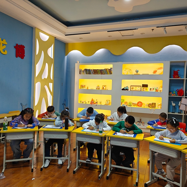 最令人期待的立体瓷瓶贺卡手工环节,让孩子们从“听”与“看”转向“做”与“创”。老师提前备好印有简约瓷瓶轮廓的卡纸、水彩笔、彩绳与装饰贴纸,参照馆藏瓷纹设计图案,再讲解立体折叠的技巧。拿到材料包后,孩子们立刻投入创作:有的模仿经典青花鱼藻纹,画出灵动的小鱼;有的以粉彩牡丹为灵感,搭配鲜艳色彩;还有的大胆创新,给“瓷瓶”加上卡通耳朵、星星图案,赋予传统瓷瓶童趣新貌。随着一张张平面卡纸被折成立体形状,再用彩绳装饰边缘,独一无二的瓷瓶贺卡渐渐成型,教室里满是成就感与欢笑声。