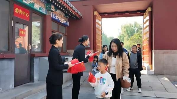 民族馆区以“手持国旗 定格爱国情”活动开启假日清晨,观众手持国旗录制祝福,用“中国红”点亮文化空间,让民族自豪感在每个人胸中激荡,充分迸发爱国热情。