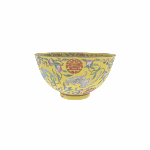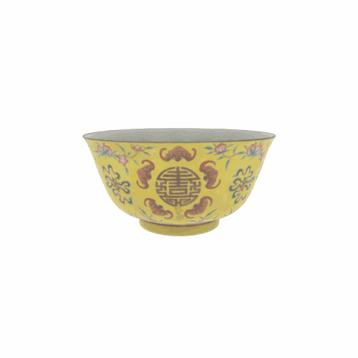 光绪款黄地粉彩里外桃蝠团寿碗(清代)