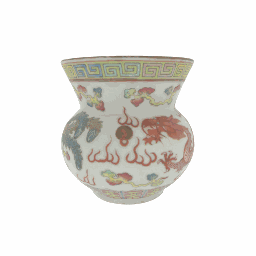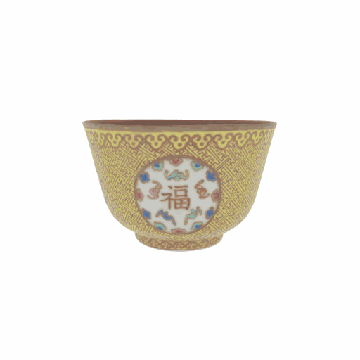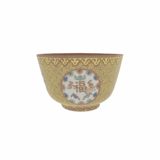 同治黄地锦纹开光福禄寿喜碗(清代)