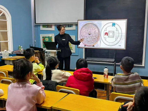 课程中,一幅幅高清图片成为连接古今的桥梁,将铜镜的奥秘娓娓道来。孩子们跟随讲解,清晰辨识镜钮、镜缘、镜背等各部位名称,更在纹饰的比对中触摸历史的脉络——从商周的简约古朴到汉唐的雄浑华丽,不同时代的纹饰特征如同“时光密码”,让千年文明变得可感可触。