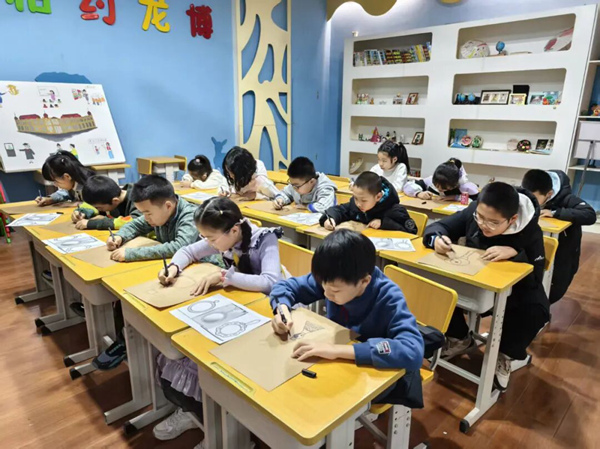 孩子们在学习中细致观察铜镜纹饰细节,在制作中体会古代铸造工艺的巧妙,孩子们不仅了解了金代山水人物故事镜的历史价值与艺术特色,还在实践中拉近了与文物的距离,激发了对古代历史与传统工艺的探索欲望。