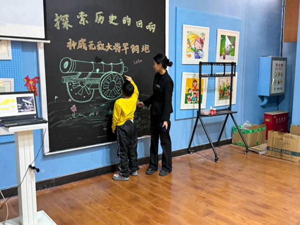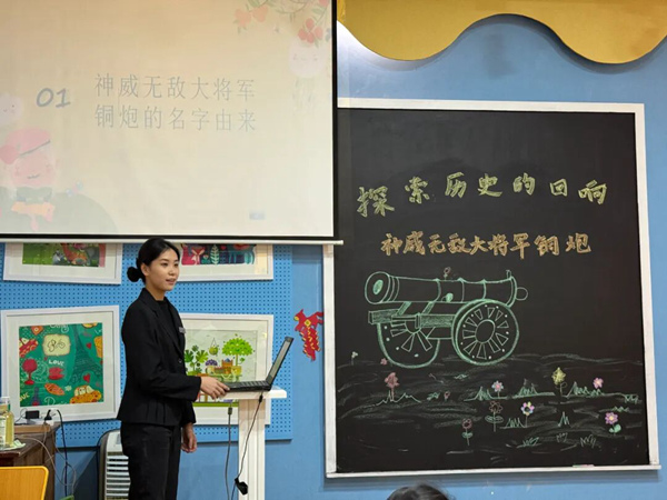 课堂上,省博物馆的社教老师通过趣味问答、互动交流的方式,引导同学们积极融入本次历史课程。让同学们了解到铜炮在历史中的关键作用,它不仅是战争武器,更是民族精神的象征,代表着坚韧不拔、顽强抗争的精神。