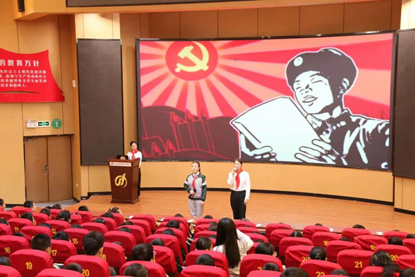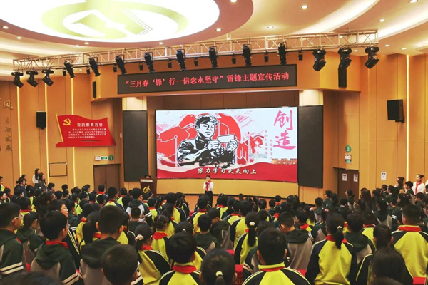 同学们佩戴鲜艳红领巾,昂首肃立、庄严宣誓,用铿锵有力的青春誓言,立下向雷锋同志学习的坚定志向,将榜样精神内化于心、外化于行,不断锤炼道德品质,树立远大理想,成长为新时代好少年。