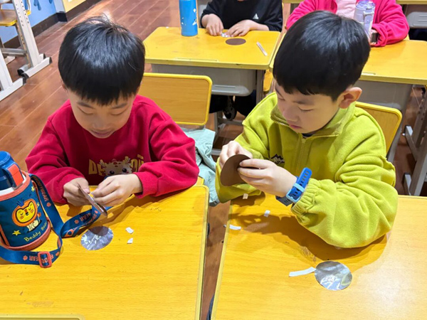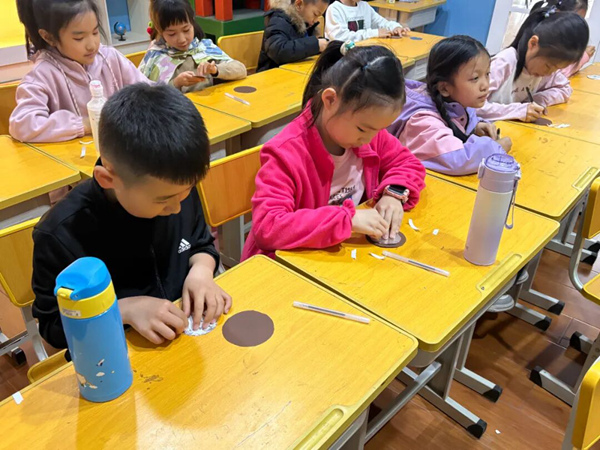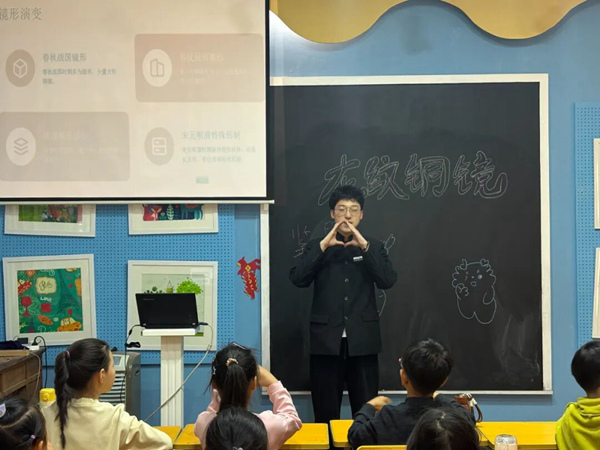 活动中,博物馆老师以馆藏龙纹铜镜实物图片为依托,通过生动的讲解,引导同学们观察不同时期龙纹的造型差异,解读纹饰背后的文化寓意。老师还结合互动问答,让同学们分享自己对龙纹的印象,进一步激发大家对传统文化的兴趣。在实践环节,同学们化身“小小工匠”,尝试设计属于自己的“龙纹铜镜”,在活动中感受传统纹饰的线条之美与文化魅力。